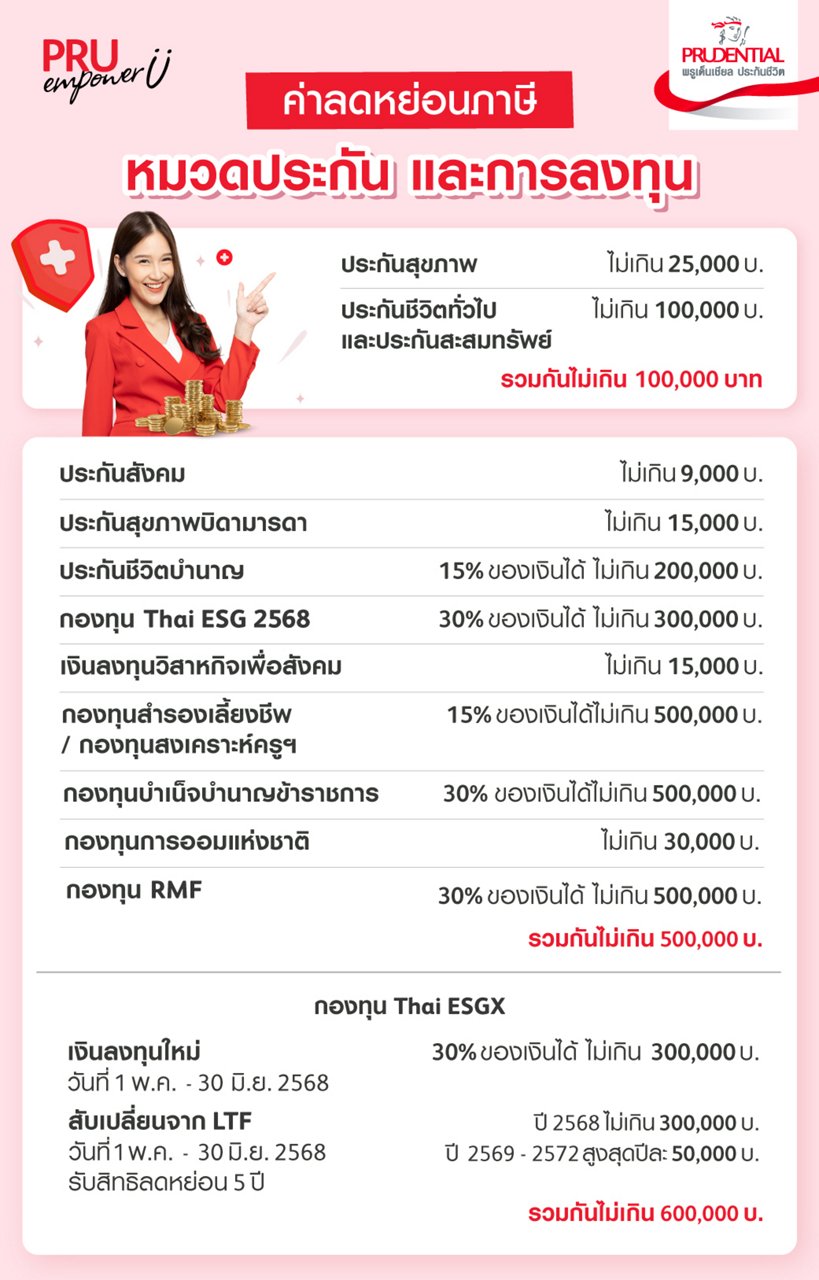 รับสิทธิลดหย่อน 5 ปี โดยปี 2568 ลดหย่อนไม่เกิน 300,000 บาท และปี 2569 – 2572 ลดหย่อนสูงสุดปีละ 50,000 บาท